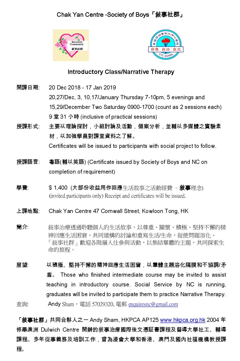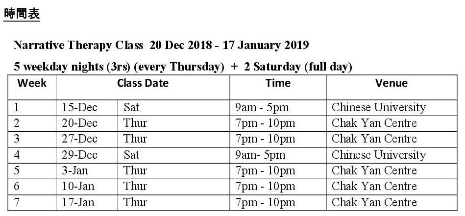 » [則仁]Narrative Therapy Class 20 Dec 2018- 17 Jan 2019